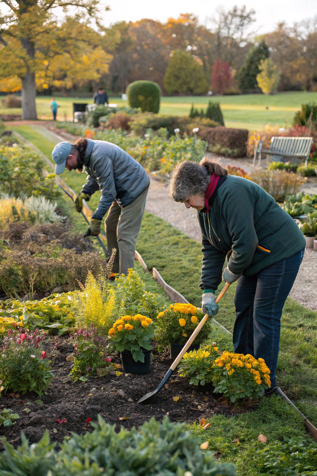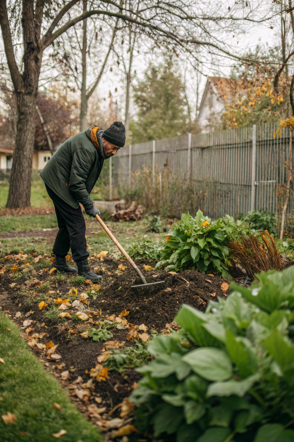 Applying Leaf Compost to Prepare Garden for Winter brings authentic October charm by combining seasonal plants, rustic textures, and garden aesthetics designed