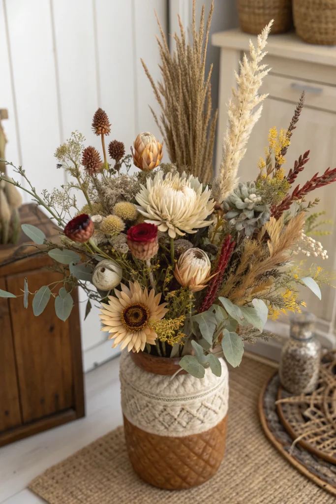 - Winterizing Your Display: During the colder months, dried flower arrangements can bring warmth and color indoors. Consider adding elements like pinecones, cinnamon sticks, or dried citrus slices for a festive touch that aligns with the season. These durable elements are perfect for enduring cold weather.