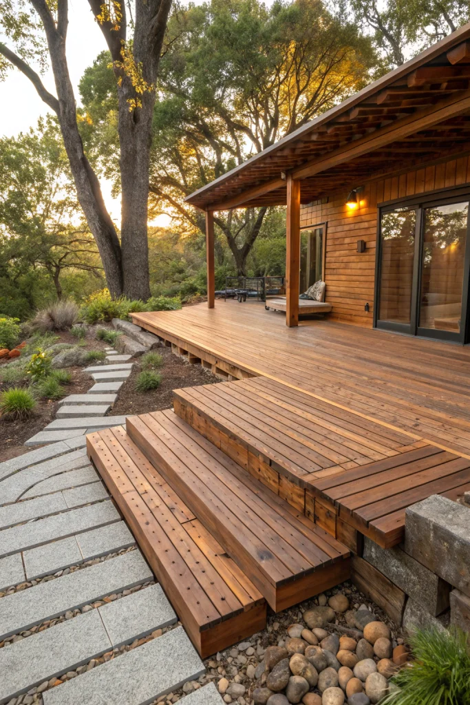 - Lighting Integration: Install subtle LED strip lighting beneath deck railings or steps for a warm, inviting glow at night. Couple this with strategically placed warm wood lanterns or string lights draped across a pergola for ambient illumination.