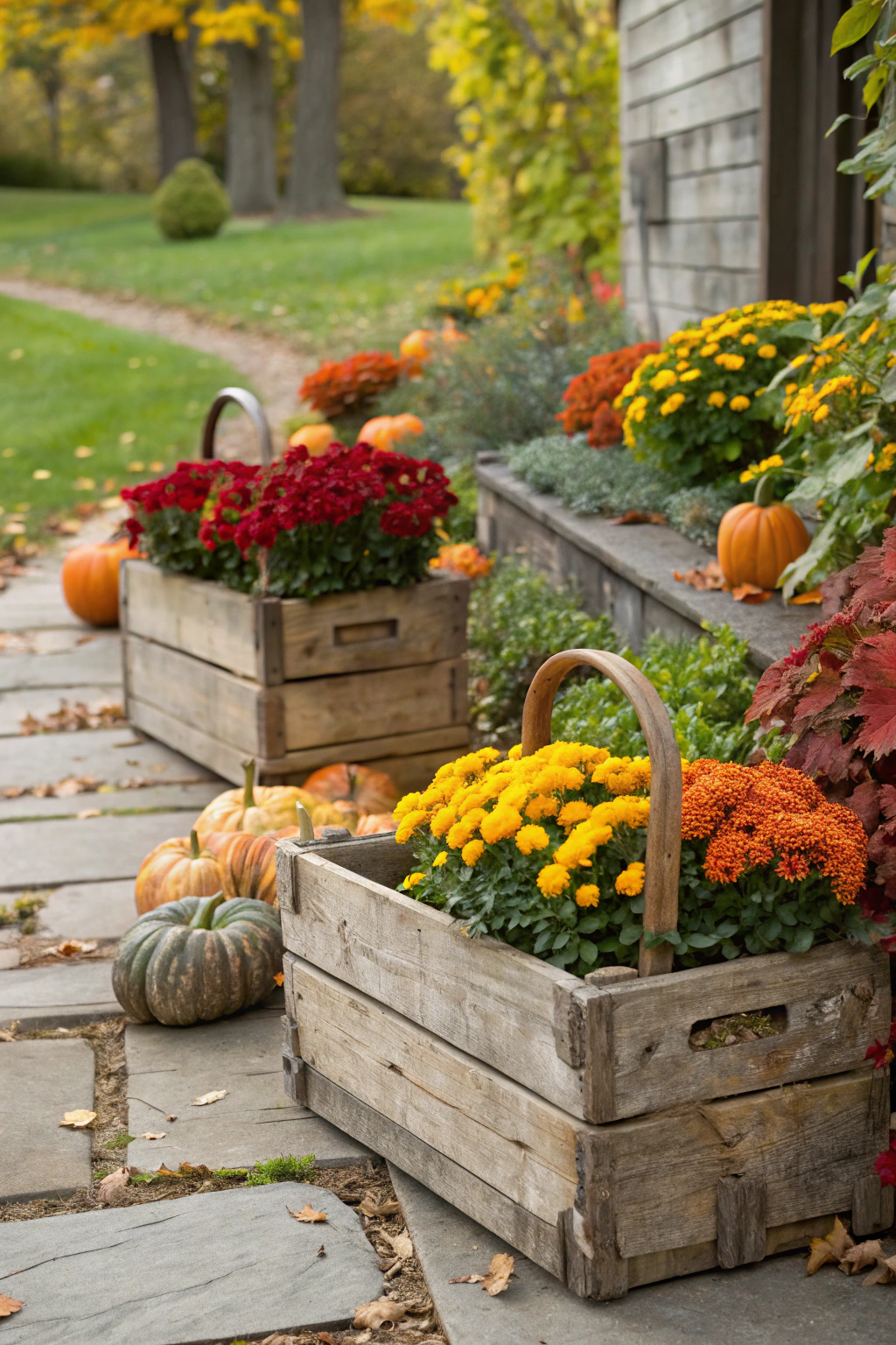 Rustic Apple Crate Planters for Autumn Gardens brings authentic October charm by combining seasonal plants, rustic textures, and garden aesthetics designed to